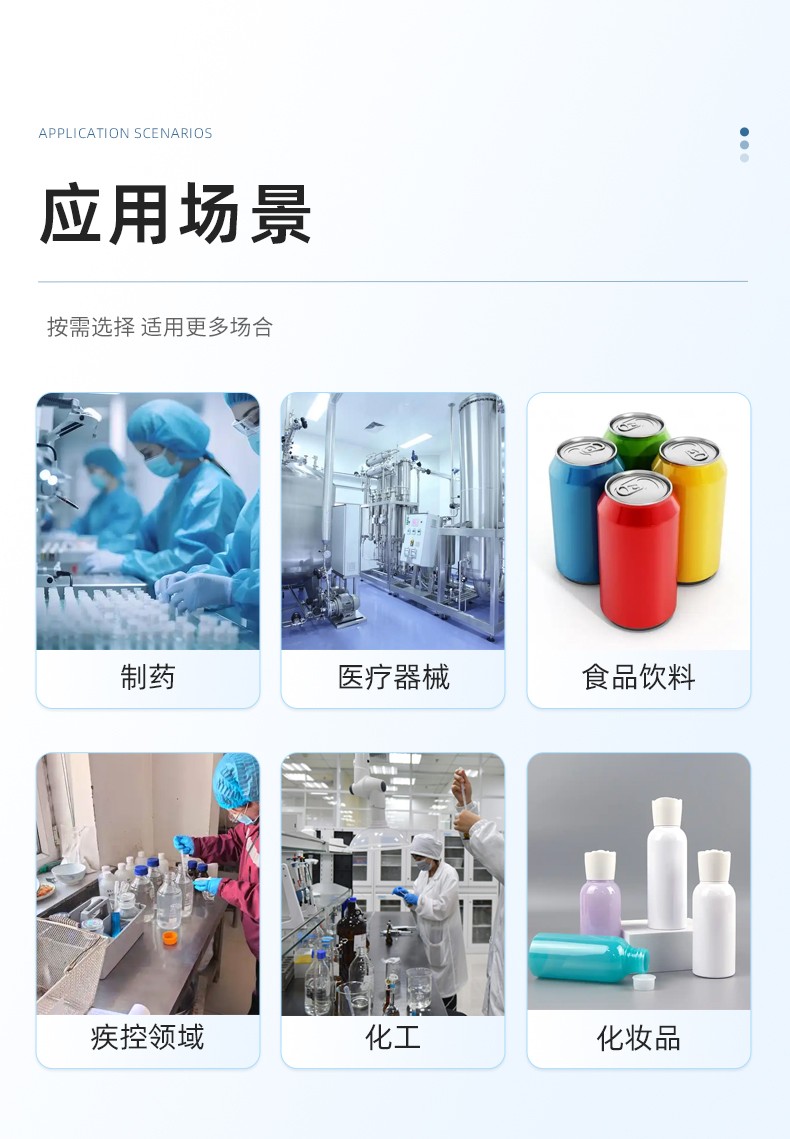 制药行业:适用于制药用水(纯化水、注射用水)、液体原料及非规定灭菌制剂药品的微生物限度检验。
