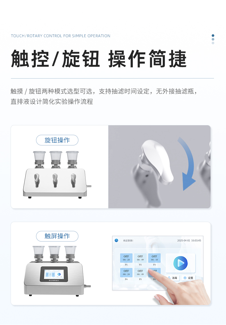 1. 抽滤时间可设定:支持抽滤时间参数设定,有效避免因人为操作差异导致供试液抽滤不充分,提高检测一致性。