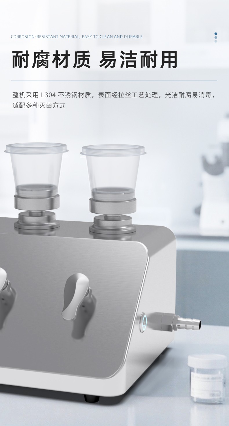3. 灭菌方式灵活:过滤单元支持火焰快速灭菌及在线消毒;选用一次性滤杯时,泵头采用拔插式结构,便于拆装并适配多种灭菌方式。